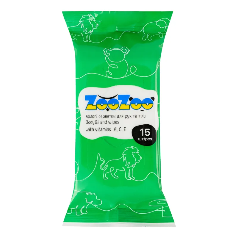 ZooZoo Servetele umede p/u miini si corp cu vitamine A,C,E 15 buc 1/36