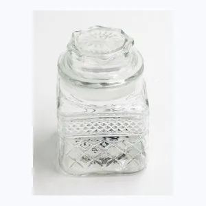 borcan sticla transparent patratele mic
