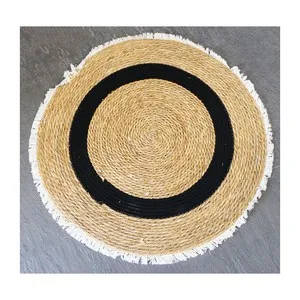 covoras impletit rotund bej cu funii albe 38 cm