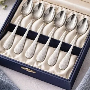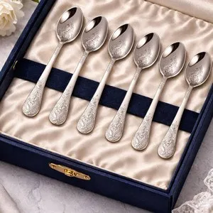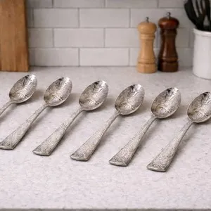Set de 6 lingurițe pentru ceai, cu ornament din inox 18/10